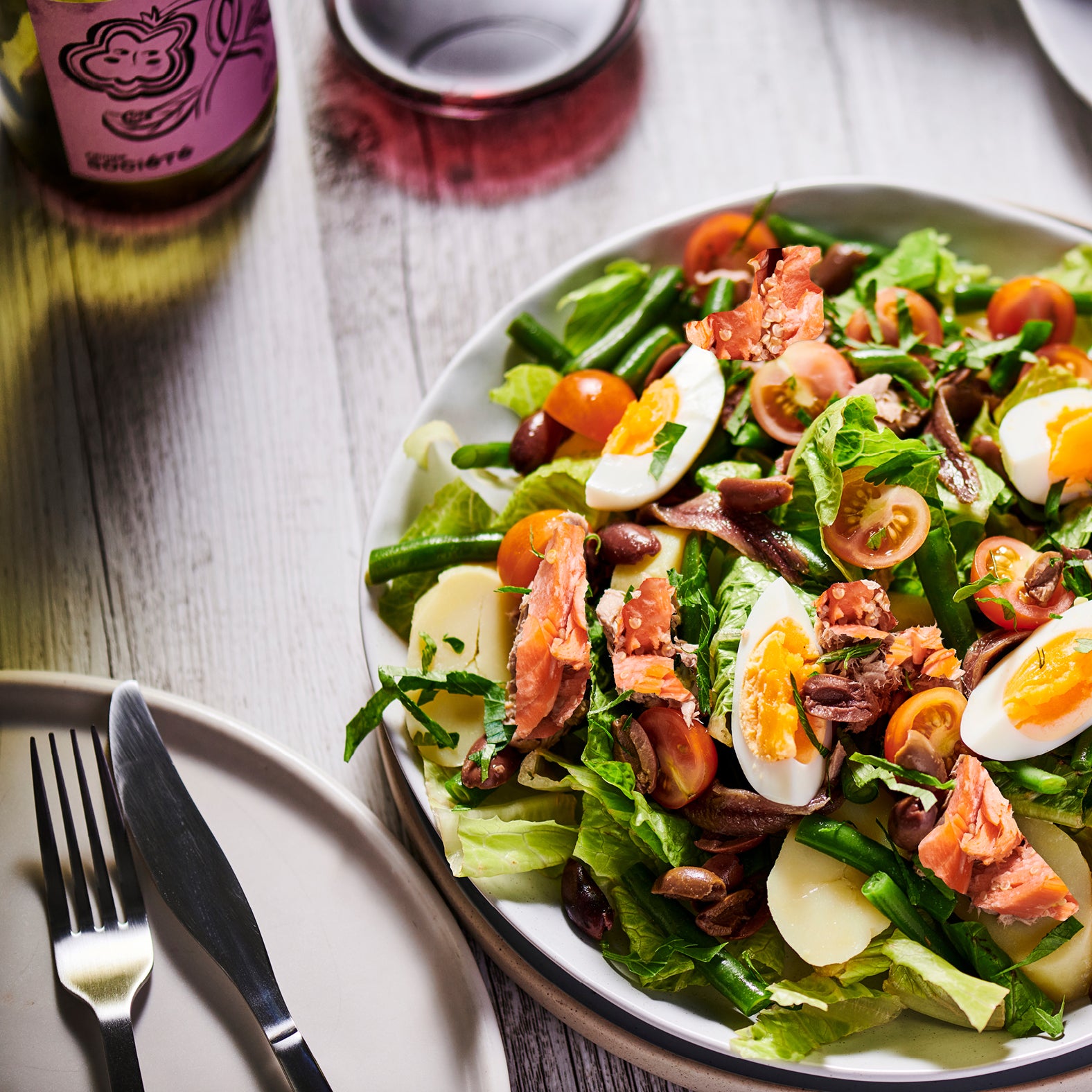 Salmon Nicoise Salad, Seed-Mustard Vinaigrette